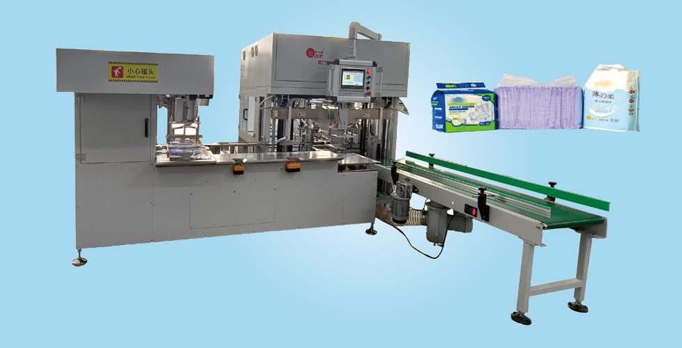 P28包裝機是主要用于衛生巾、嬰兒紙尿褲(小包)、嬰兒護理墊、棉柔巾等裝袋封口的全自動包裝機。